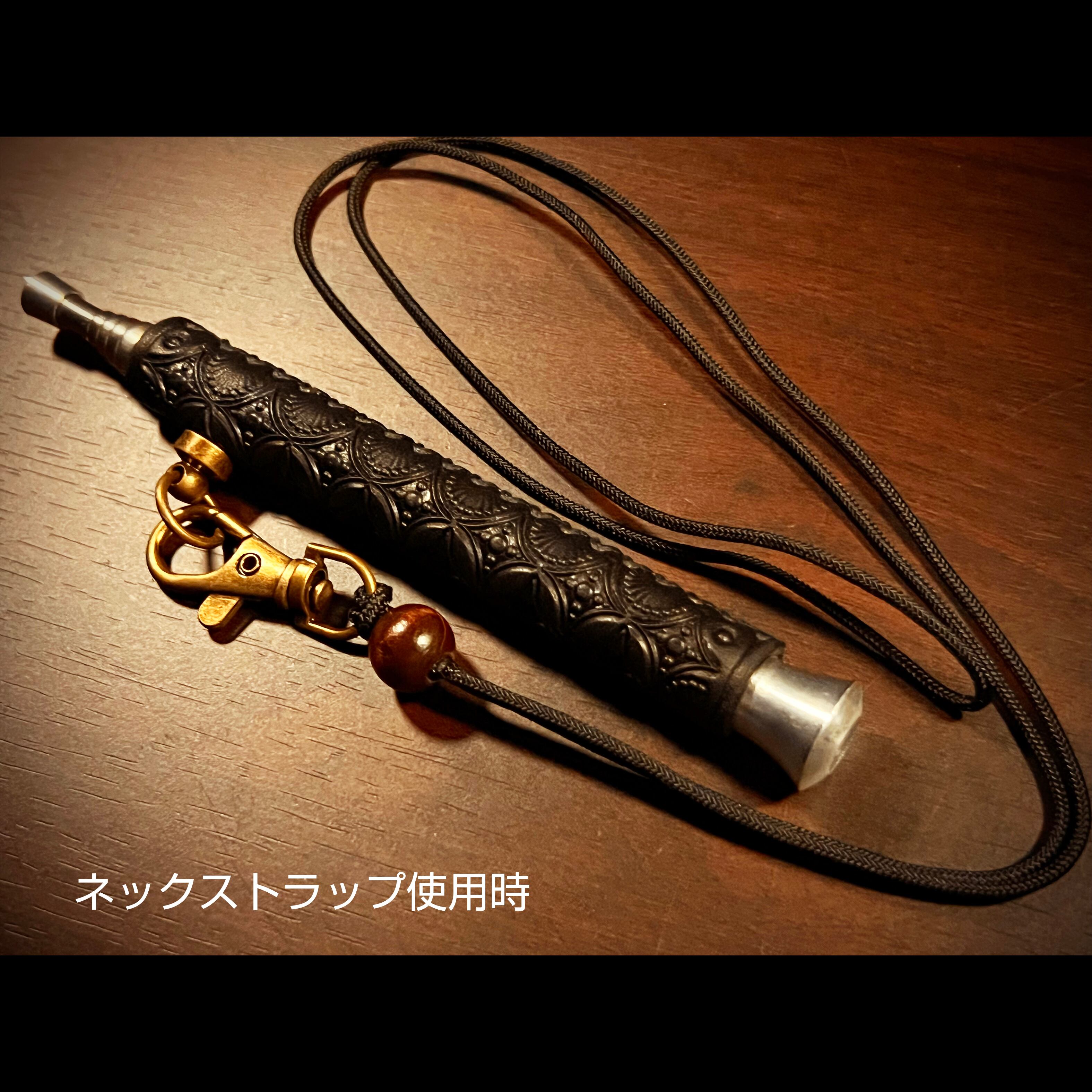レザーグリップ部分をハンドメイドしたファイヤーブラスター(伸縮式火吹き棒)+レザーストラップ&パラコードネクストラップのセットです。
